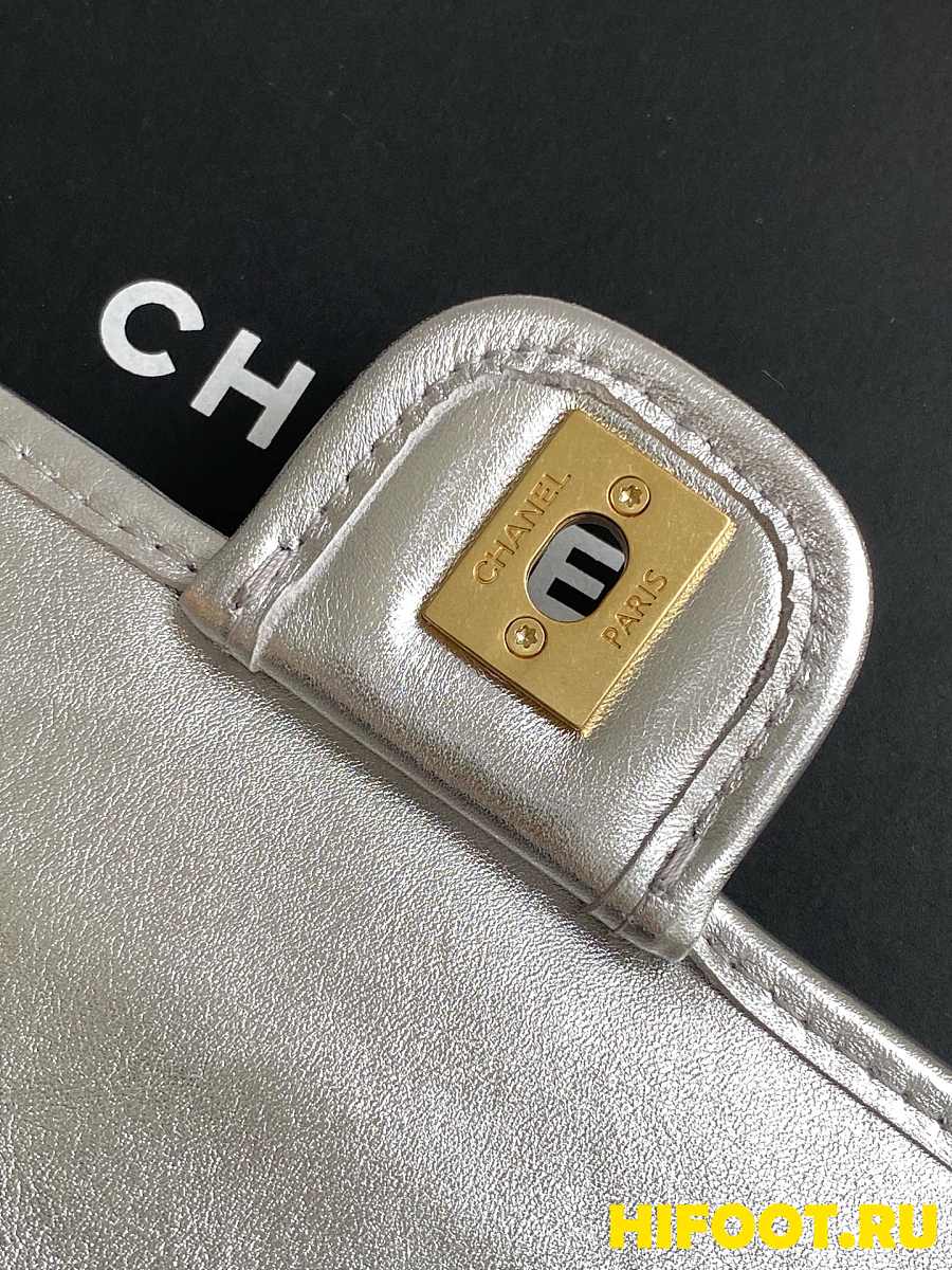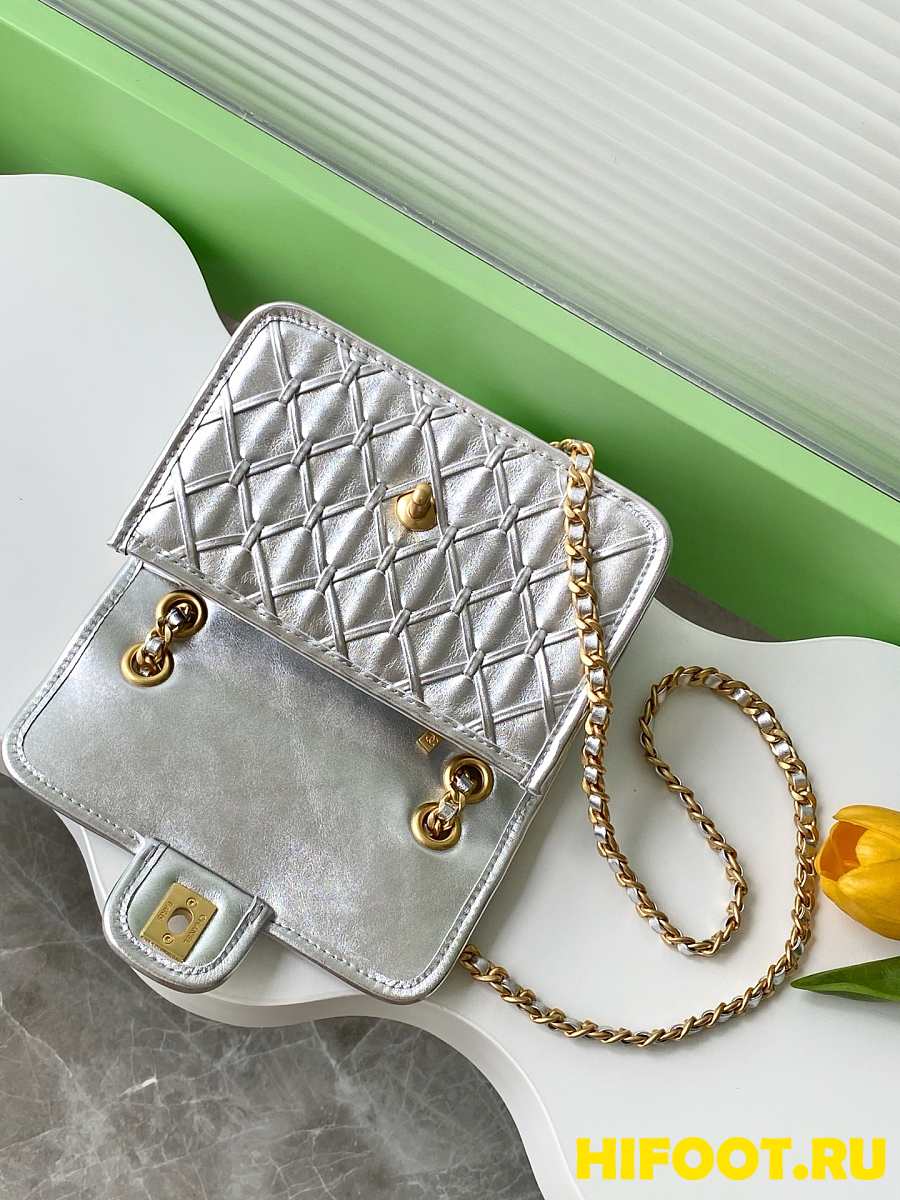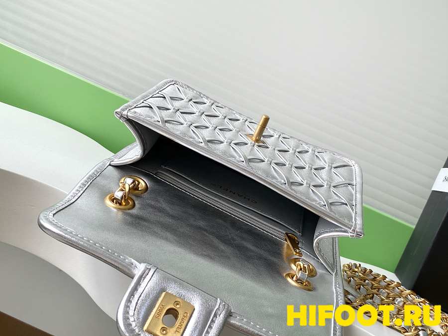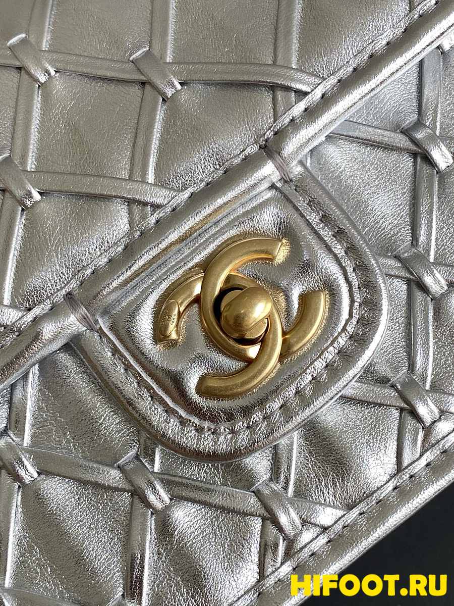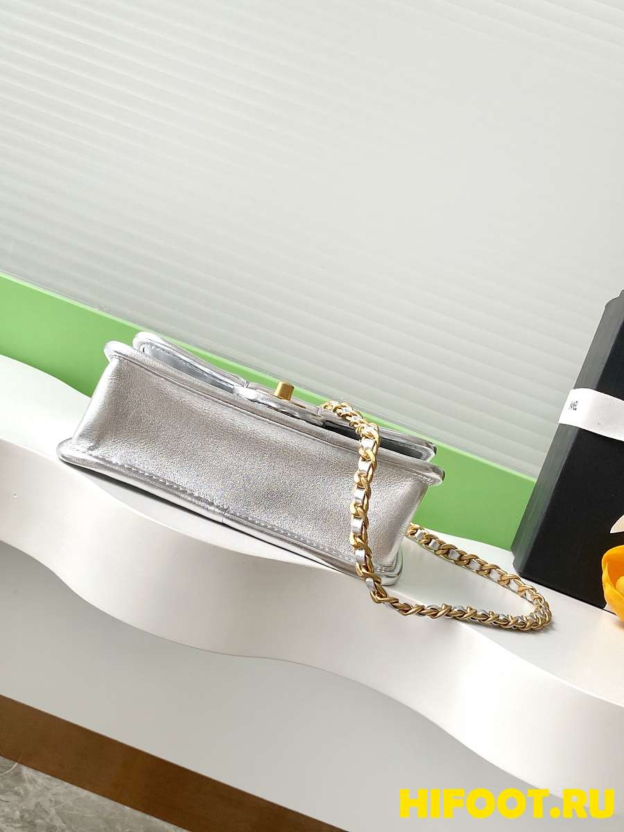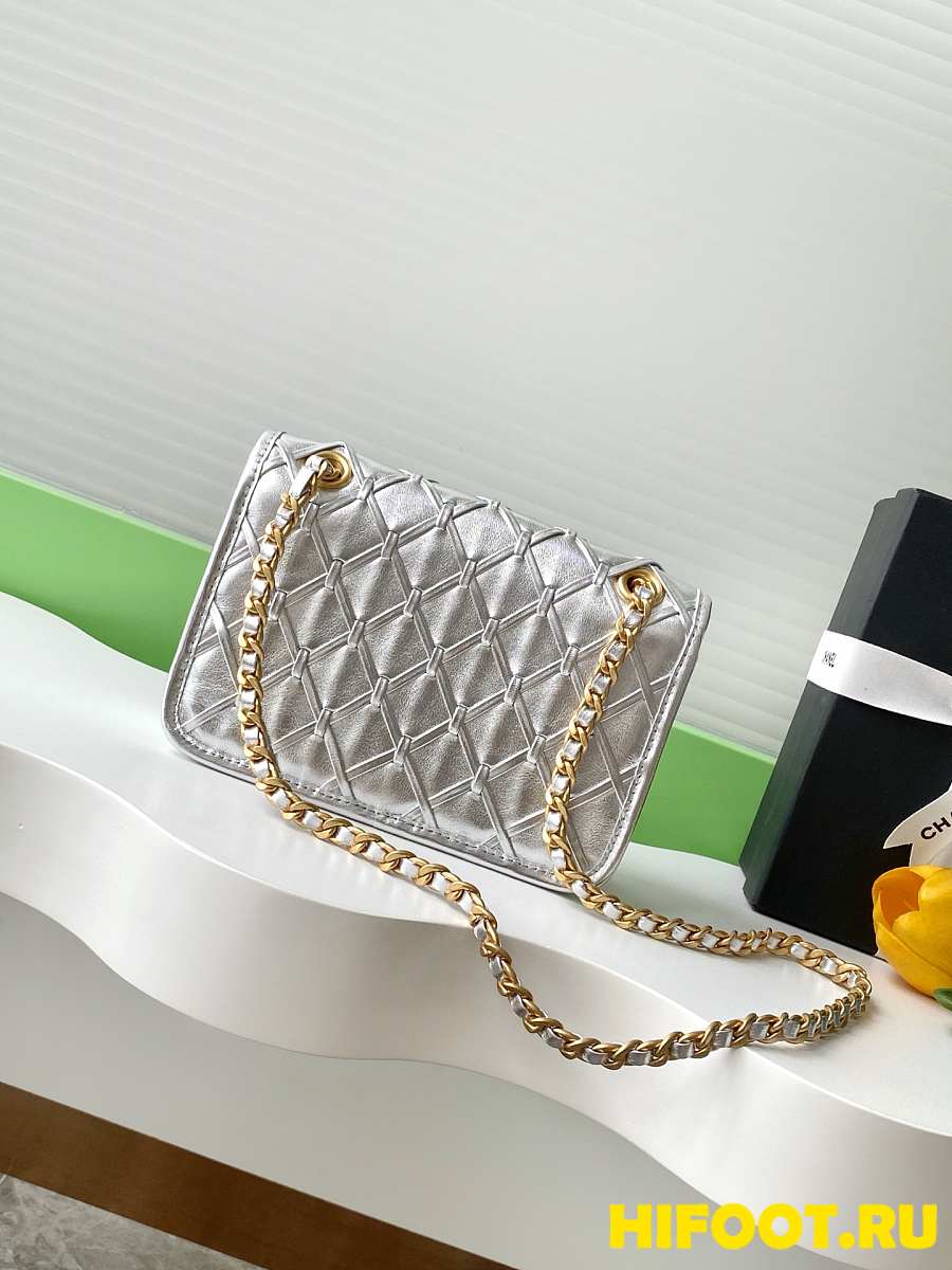 Chanel CC 25C Flap Bag 19cm Silver Metalic Quilted Lambskin 13x19x5.5cm