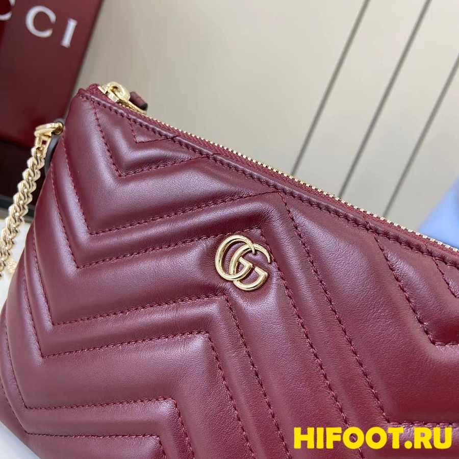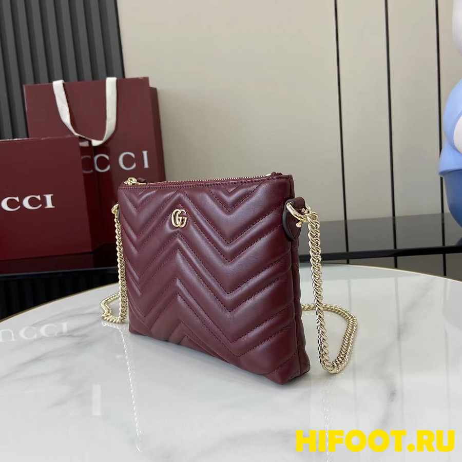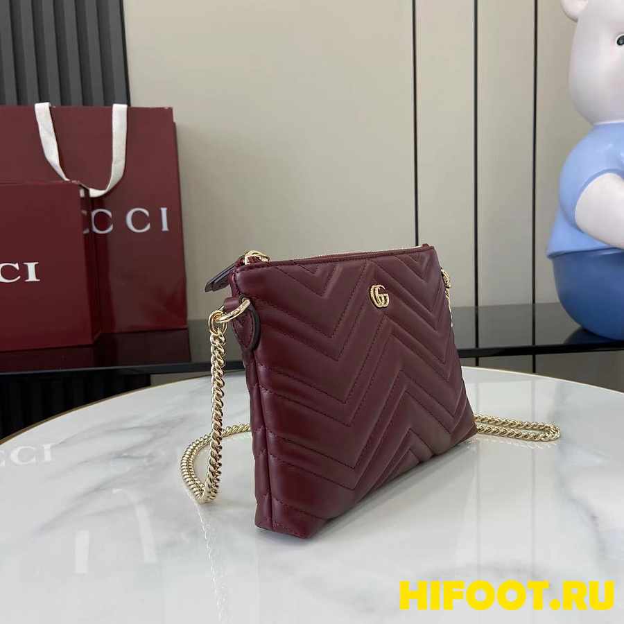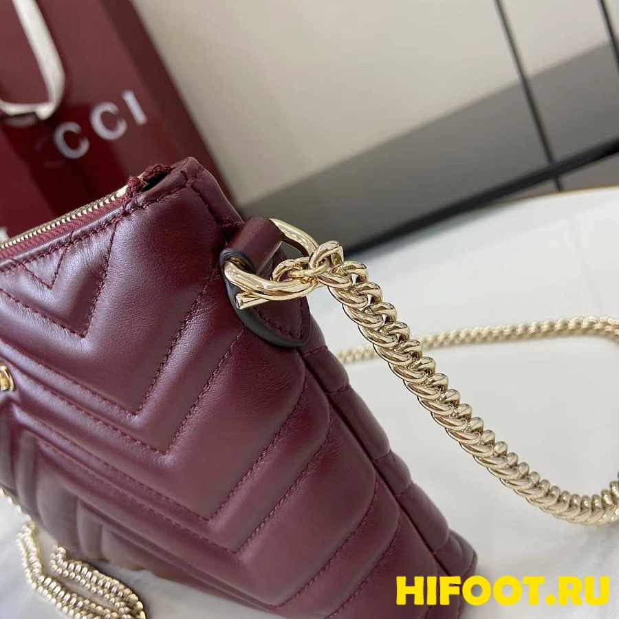 Gucci GG Marmont pochette with chain wine red 21x15x3.5cm